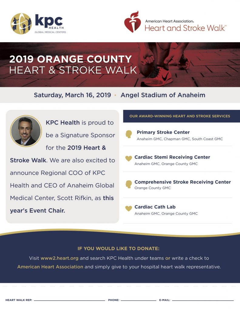 You’re invited to join us Saturday March 16, 2019 for the 2019 Orange County Heart & Stroke Walk in Anaheim at the Angels Stadium. Learn more about our Award-Winning Heart & Stroke Services.